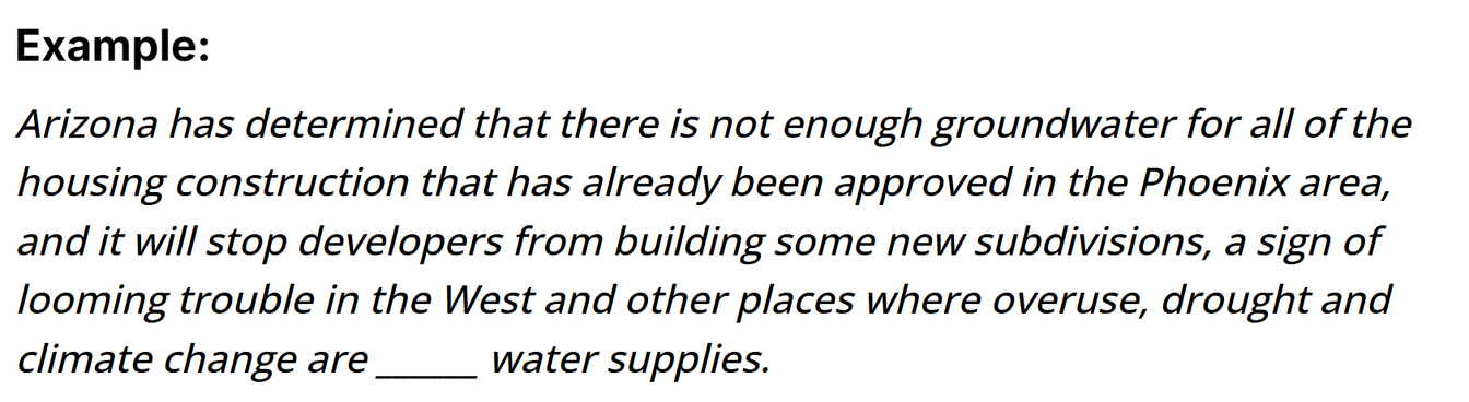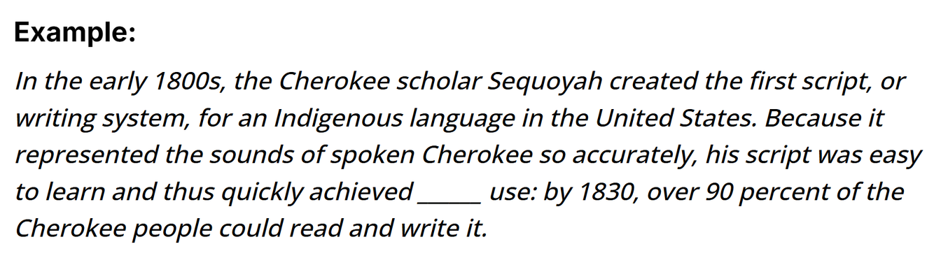 In most passages, a contextual paraphrased versions of the sentence containing the blank will be provided.