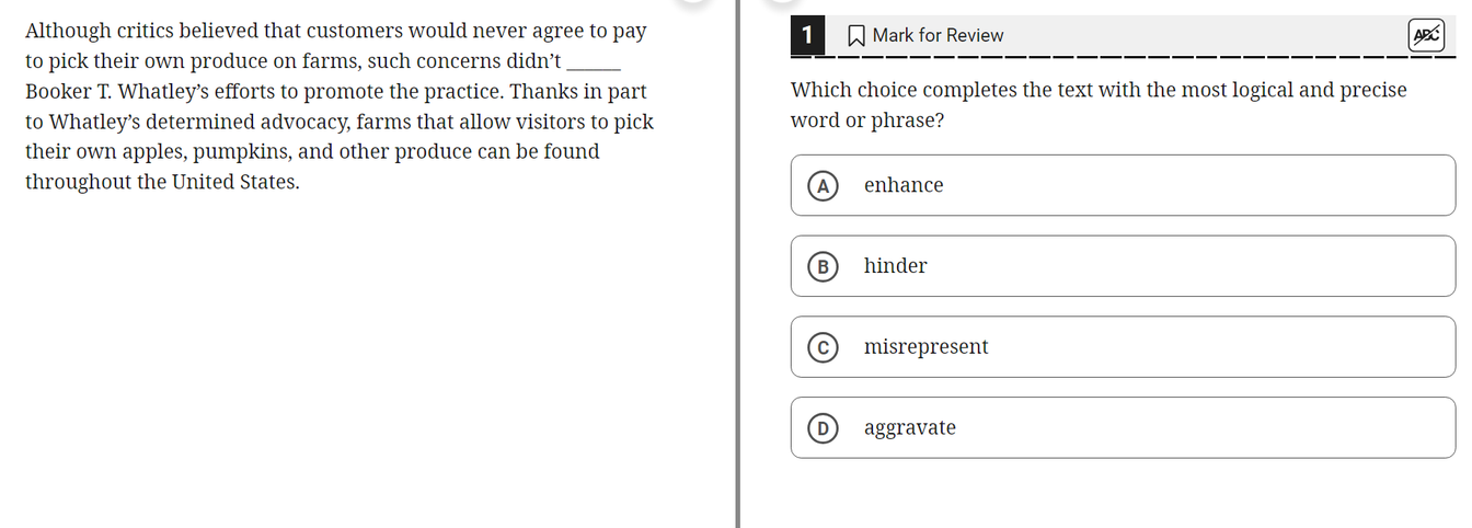 In the digital SAT, you might encounter a word that is extremely simple and obviously wrong.